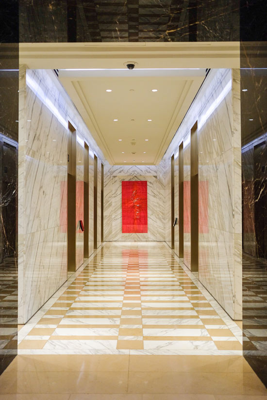 The building is equipped with high-speed elevators.