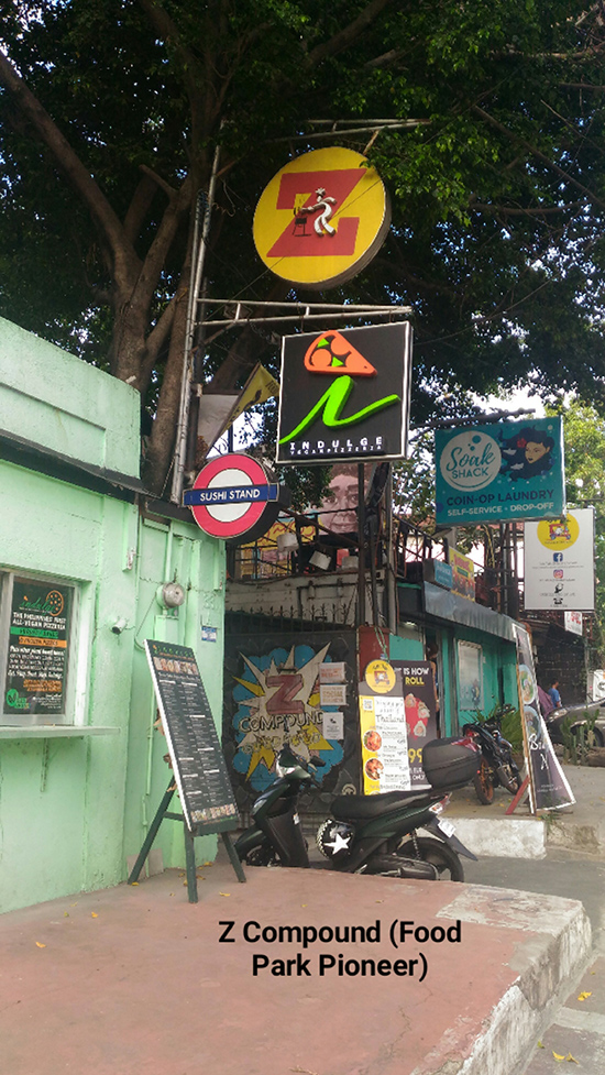 The restaurants were not exclusively located on Maginhawa. One serious spin-off is Malingap St. which stretches from near Bayantel up to Kalayaan Ave. One notable restaurant  is “Pipino” which serves Filipino vegetarian dishes. It is temporarily closed. Going toward Kalayaan is “Little India” which has its own version of vegetarian Indian cuisine. My favorite is a stall called  “Indulge” which claims to be the Philippines’ first all-vegan pizzeria. It is one of the stalls fronting Z Compound which pioneered in food parks. Z was so hip and trendy that my balikbayan nephew said that it reminded him of a food park in Texas. Another vegetarian restaurant is the affordable Veggie Guys. Try their veggie isaw and tofu sisig. With all these healthy food stops, we might as well call Malingap the “Vegan Road.”