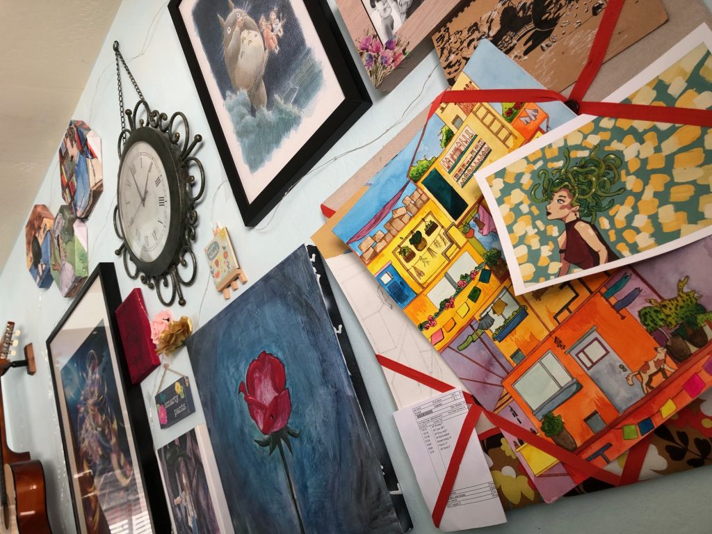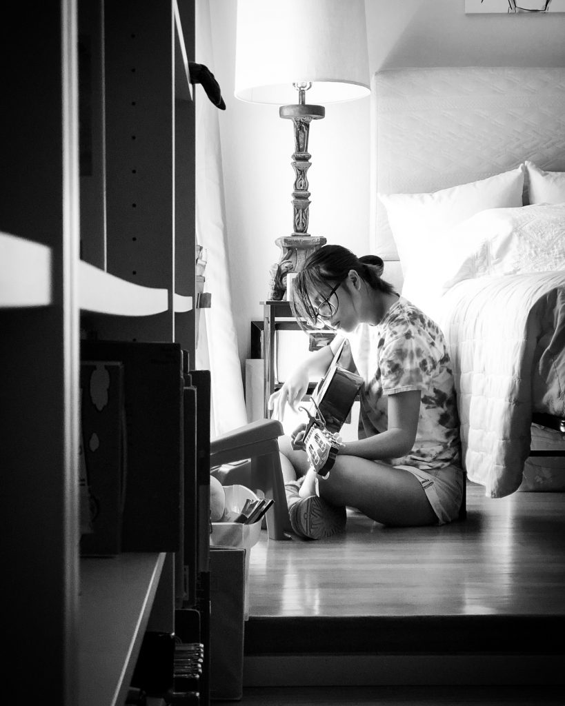 B: So many! I like to write stories on my laptop and work on my Dungeons and Dragons campaign that I DM (dungeon master) for a club. Usually, I do that in the sunny place by the backyard door. I also like to draw and paint, particularly with watercolors, but I keep that to my room since carrying painting supplies everywhere can get hazardous. I play guitar, too. My lolo teaches me, so I also like to set up my camera for FaceTime by the backyard door and tape chord sheets to the glass. With family, I like to bake and cook. The kitchen is small and we’re rather numerous, so it gets crowded sometimes!