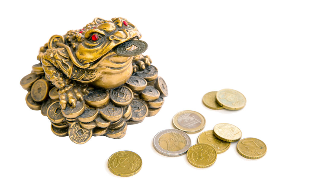Invest in wealth symbols like citrine crystals, wealth jars, money frogs and Chinese-shaped coins.