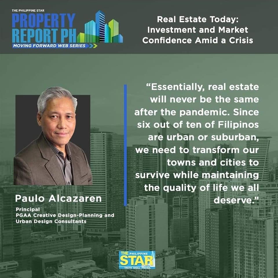 “Real estate will never be the same after this pandemic. Our lives will have to change and with it so too where we live, work, worship and play,” said Alcazaren. “Since six out of 10 Filipinos are urban or suburban, we will need to transform our towns and cities to ensure we survive, as well as sustain a quality of life that we deserve.”