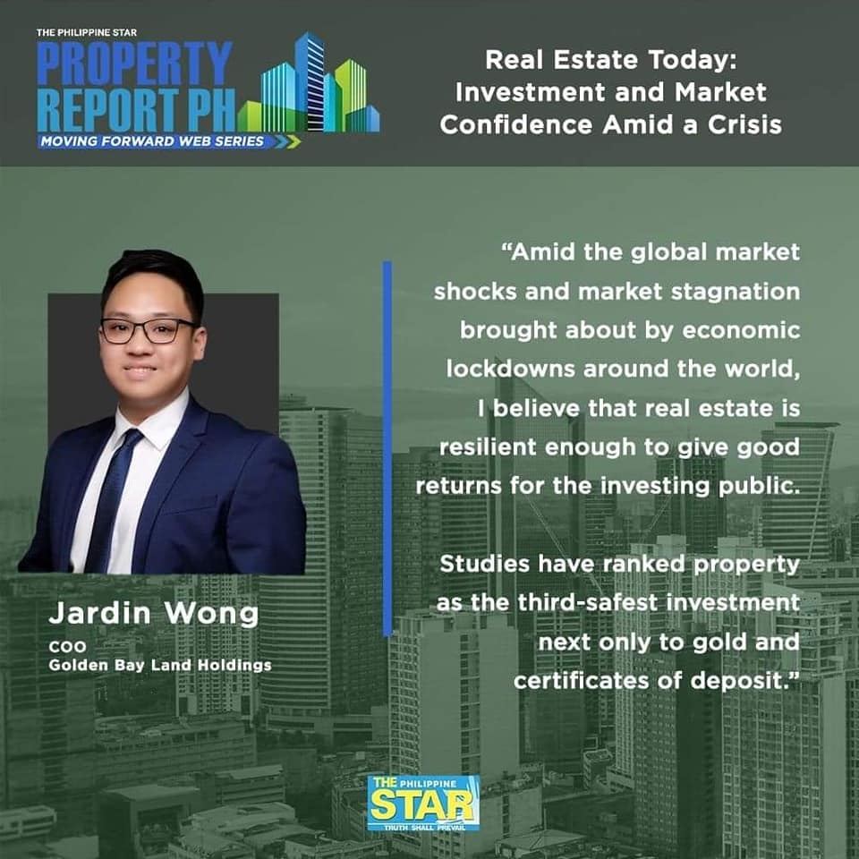 The Philippine STAR’s Property Report PH held the first of its “Moving Forward” series, entitled “Real estate today: Investment and market confidence amid a crisis,” on June 11. Hosted by Property Report editor Tanya T. Lara, the online discussion featured PGAA Creative Design-Planning and Urban Design Consultants principal Architect Paulo Alcazaren, Golden Bay Land Holdings COO Jardin Wong, and Leechiu Property Consultants director of research and consultancy Roy Golez, Jr.