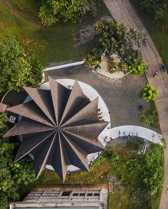 Every element of the Biker’s Den is intentional and intricate as Buensalido details in his post. From above, the structure looks like a bike’s wheel complete with spokes. The tips of the spokes are pulled up so they’re visible and easily recognizable from afar. In addition, the building is a free open space.
