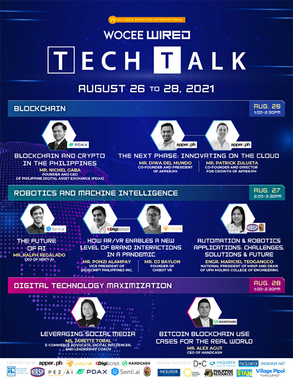 For this edition, WOCEE Wired Tech Talk will tackle interesting topics to be discussed by the following seasoned industry personalities: