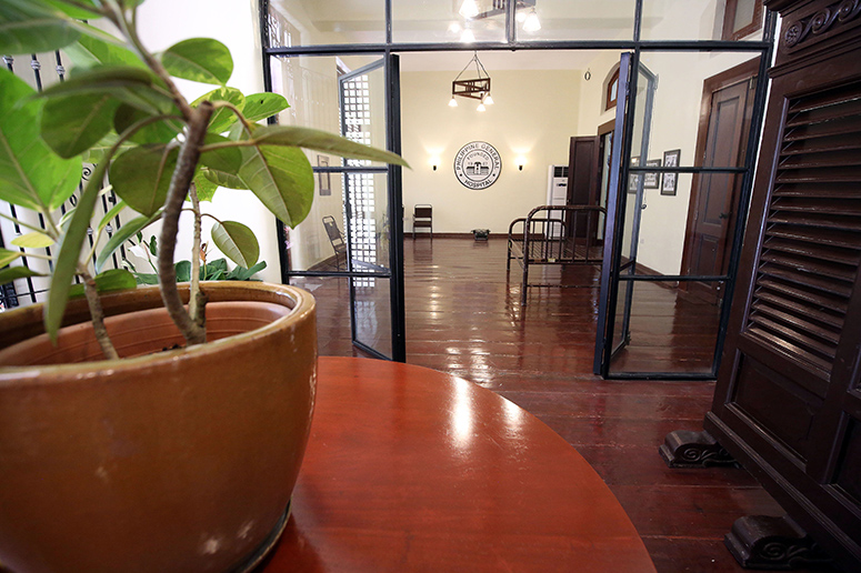 One ascends stone steps to the foyer of the building, whose focal point is an original louvered divider of the Old Nurses Dorm, which was retrieved from one of the offices in the main building. One side of the building that opens up to the veranda had become a toilet before the restoration. Manalo and De Guzman have restored the space into a small hall, which Legaspi plans to turn into a conference room.