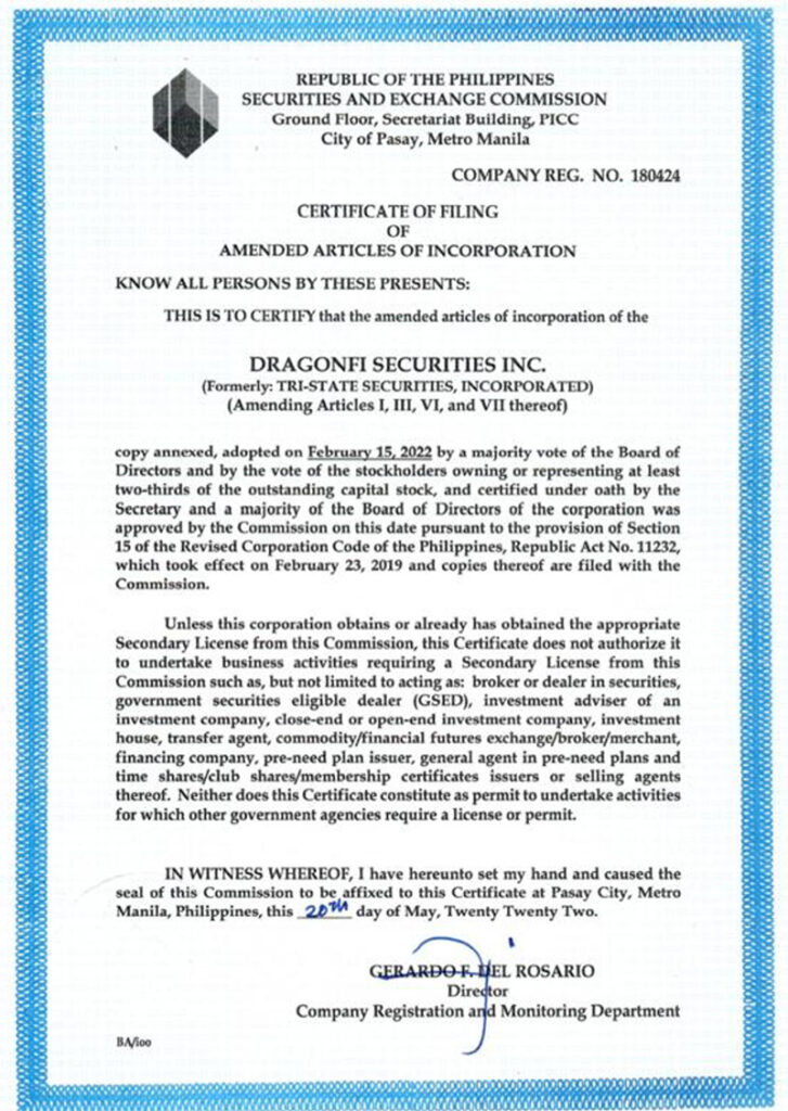 BeeDragon Global Corp’s acquisition of Tri-State Securities Inc was approved by the Philippine Stock Exchange (PSE) last November 2021.