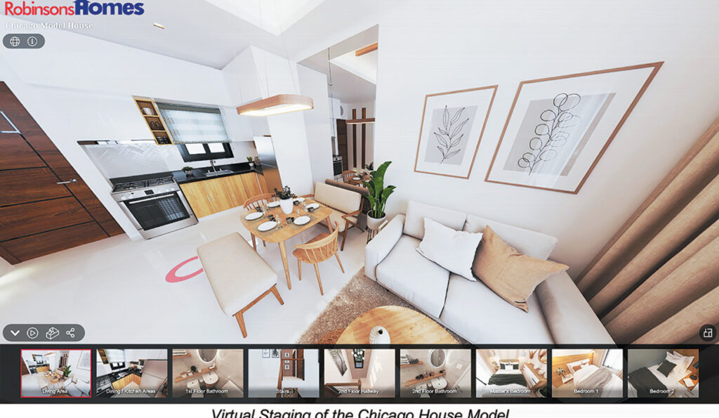 Interested homebuyers can also visit the house model unit virtually. The 360-degree virtual tour of one of Robinsons Home’s house models, the Chicago—a two-storey, three-bedroom home—is similar to what you would expect of a fully furnished model unit.