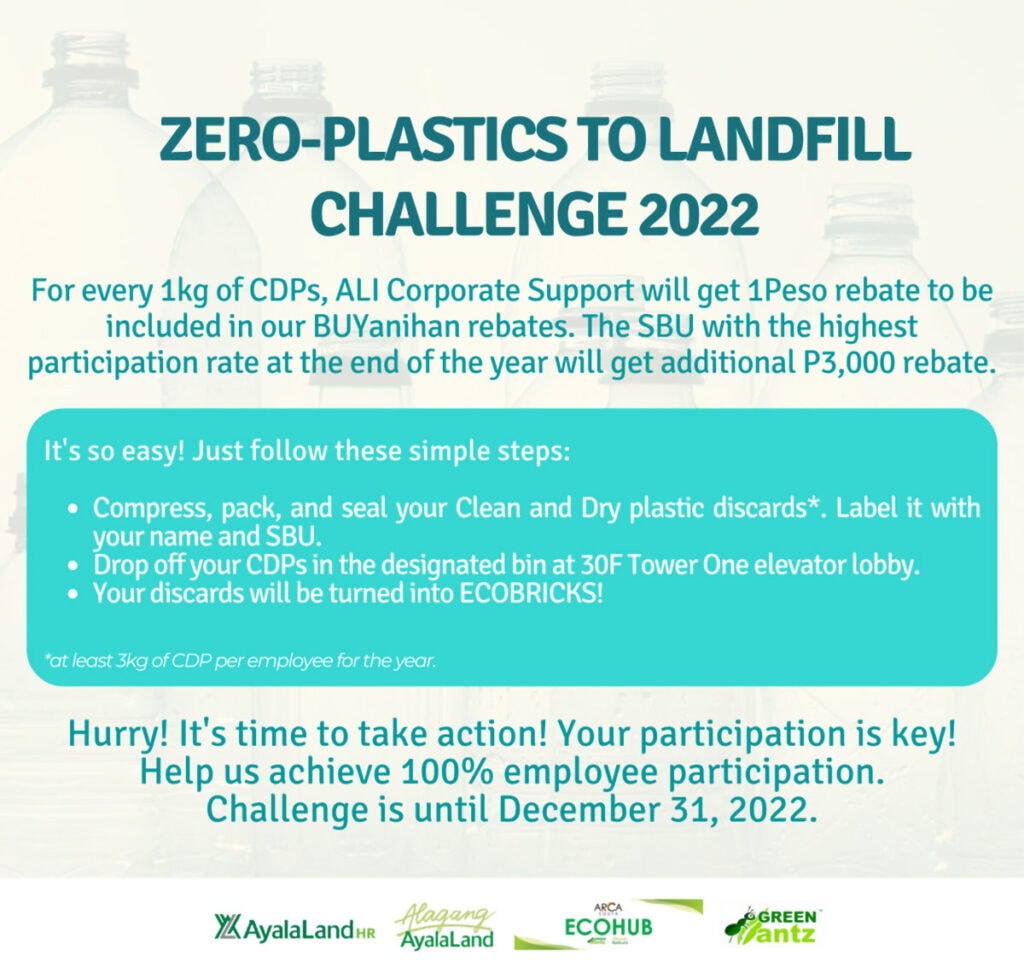 True to ALI’s carbon neutrality goal, the Clean and Dry Plastic Campaign of ALI aims to raise awareness among employees and encourages them to recycle and repurpose plastic discards, and to be mindful of how they consume, allowing them to be stewards of sustainability. Avida also contributed to this by collecting 733 kgs of plastic, with employees who participated sharing that it made them more mindful of consumption and that this activity catapulted them into making it a habit to become part of the solution to the plastic pollution problem.