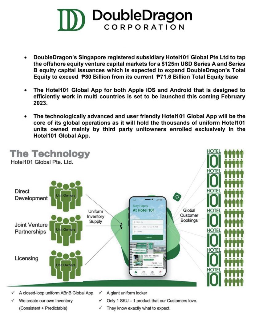 DoubleDragon Corp. is also launching in February next year its Hotel 101 Global App for both Apple iOS and Android that is designed to efficiently work in multi-countries.