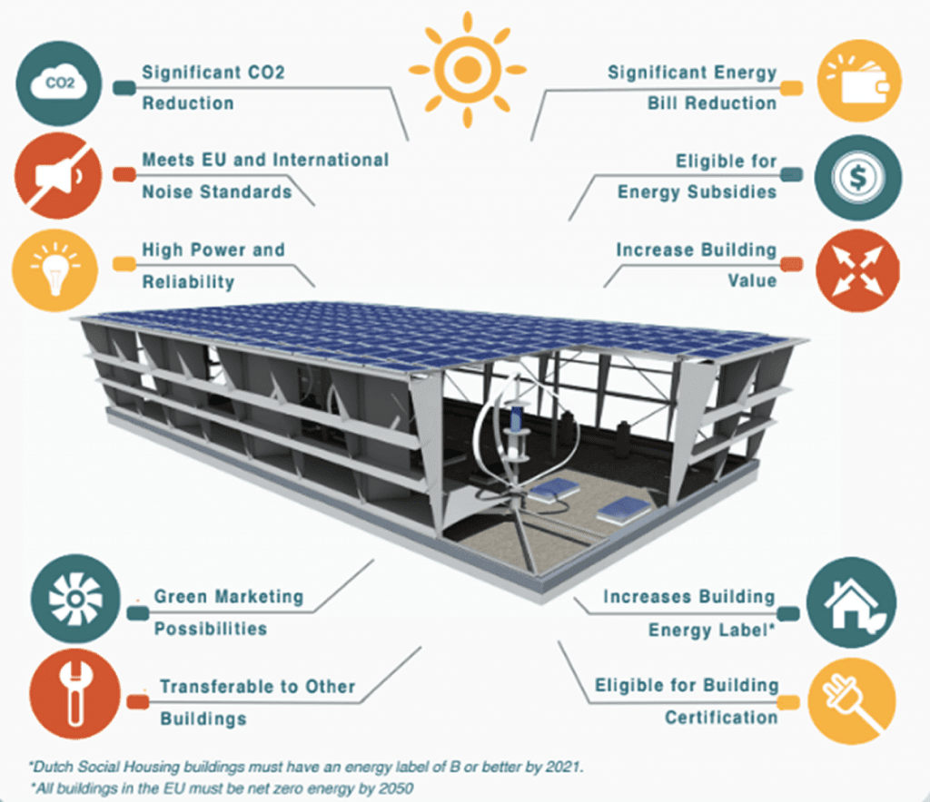A PowerNEST system shall be installed on rooftops of residential buildings, which will generate renewable energy for beneficiaries using both solar and wind power and is said to be more efficient without producing noise, vibrations, or any other disturbance.