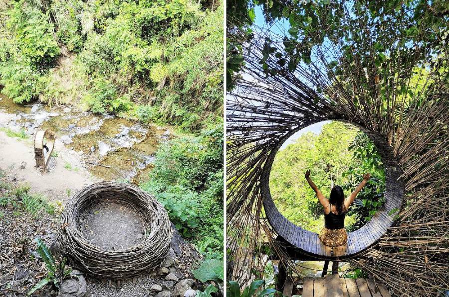 Here you can enjoy nature activities like trekking, swimming, camping, glamping, picnic, yoga, stargazing, forest bathing, waterfalls chasing, river trekking and bonfires. A short trail to the riverside leads to an area with Bali-style bird’s nests, photo spots, and a swing.