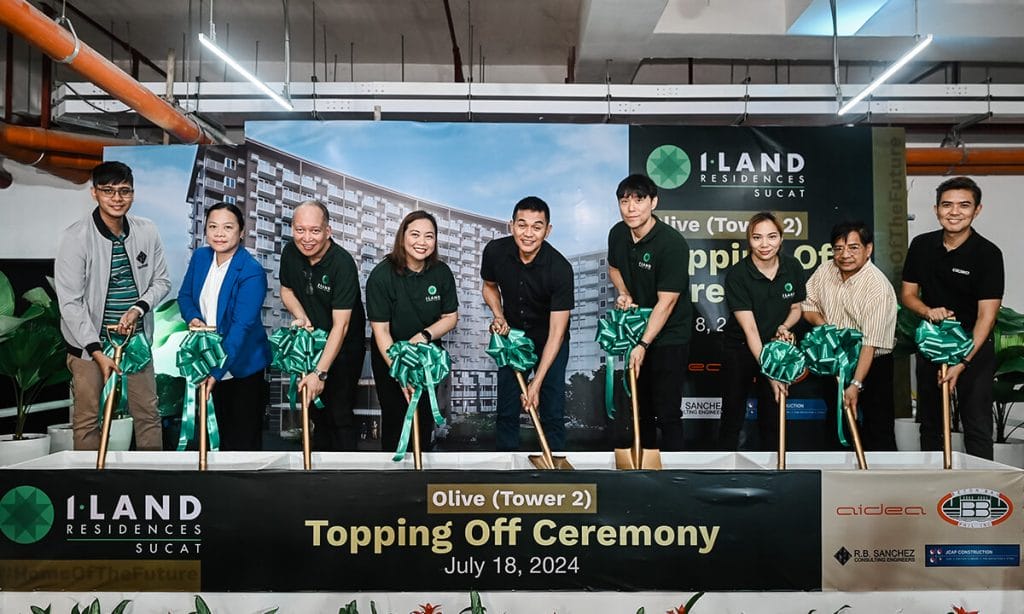 The topping off ceremonies were led by I-Land officials with Parañaque Mayor Eric Olivares as guest of honor, along with representatives from project team consultants and partner financial institutions.