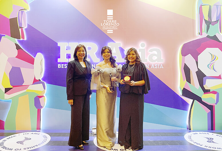 THREE-PEAT: Torre Lorenzo Development Corporation (TLDC) has been recognized as HR Asia’s Best Companies to Work For in Asia from 2022 to 2024. The Company was also bestowed a special award as one of the Most Caring Companies in Asia for three consecutive years.