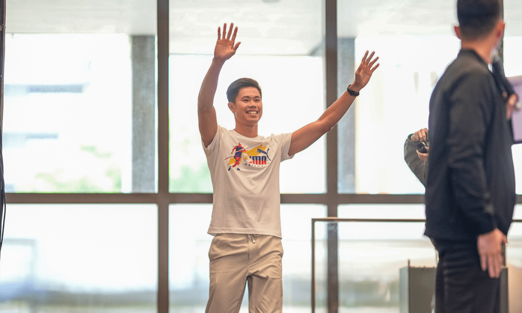 EJ Obiena warmly greets his supporters at the Ayala Malls Manila Bay Activity Center