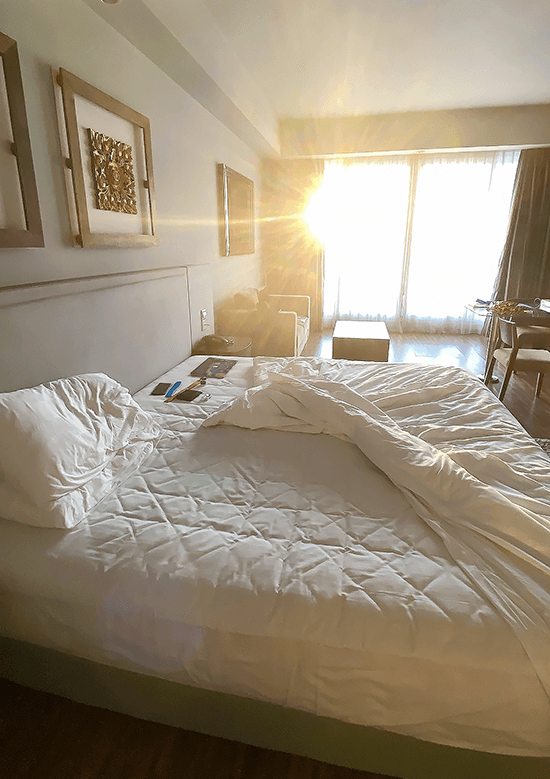 As soon as we got there, the high ceilings, open spaces, and colors through greens and flora served as the best welcoming committee. There was none of the usual hotel music or scent we would normally experience in hotels in Manila. It was mostly fresh air, quiet, the sound of water from their zen fountain, or the singing of birds in the trees surrounding the hotel.