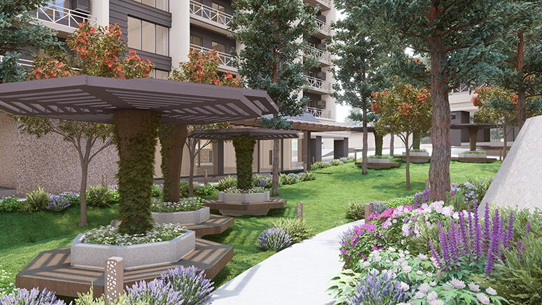 Relish every moment in Pinevale The scent of pines adds to the allure of the estate inspired by Modern Danish architecture, guiding visitors past pocket gardens and piazzas connected by pergola-covered pathways.