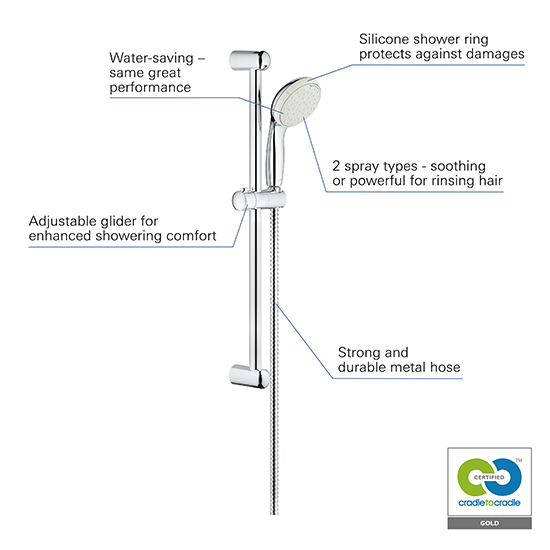 The company first entered the C2C framework in 2021 with two Bronze-level products: the Tempesta two-spray hand shower and the GROHE Blue filters. Bronze certification is granted to products whose design does not require modifications or substitutions of components.