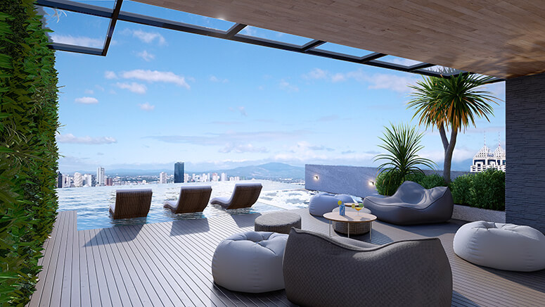 Beyond Crosswalk Towers’ strategic location, the high-rise development delivers amenities including a gym, cinema suite, infinity pool with Jacuzzi, and a roof deck.