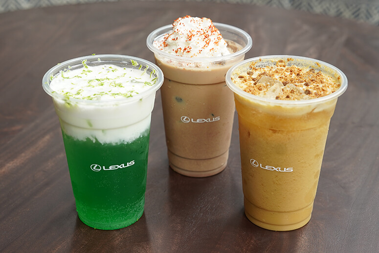 The new drinks emulate Lexus’ Takumi value of craftsmanship in their robustly crafted but well-balanced flavors. Velvet Peach & Toffee pairs ripe peach with brown toffee crumble, milk foam, and ginger ale for a soft, comforting sweetness. The Chili Mint Nama Latte plays with contrast, where subtle heat and freshness meet silky nama chocolate and No. 18 espresso, offering a latte that surprises without overwhelming. A Melon Citrus Cream Soda refreshes the palate, combining melon and lime with milk foam and soda water for a light, clean finish. This new selection of assertive flavors showcases Lexus’ unapologetically creative side, innovating familiar tastes with purpose and poise.