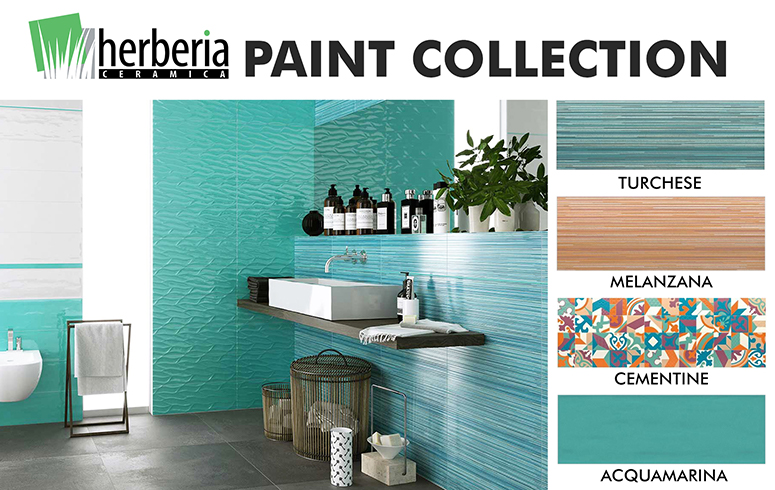 Give your space a trendy color palette and some vibrant vibe with the Herberia Paint Collection. This trendy ceramic tile collection combines impeccable craftsmanship and contemporary appeal. Their beauty comes from the lines, patterns, and glossy finish that translate to some of the most vibrant and unique textures and designs. Achieve the perfect design and an impressive personality for your bathroom space with Herberia Paint’s range of contemporary colors: Turchese, Melanzana, Cementine, and Acquamarina.