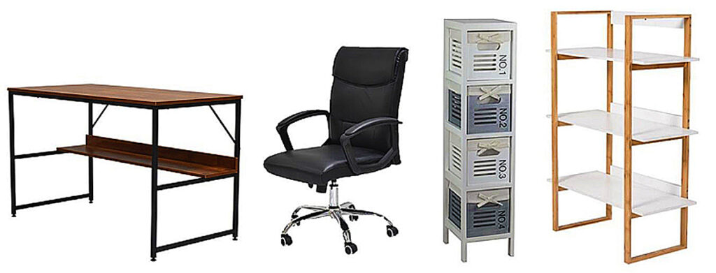 Home office essentials. Setting up your home office need not be a chore. At Heim, you can find a desk that suits your work style. Pair it with an ergonomic swivel chair with casters for exceptional comfort while working. To keep the workspace organized, these drawers and shelves can store all your office supplies.