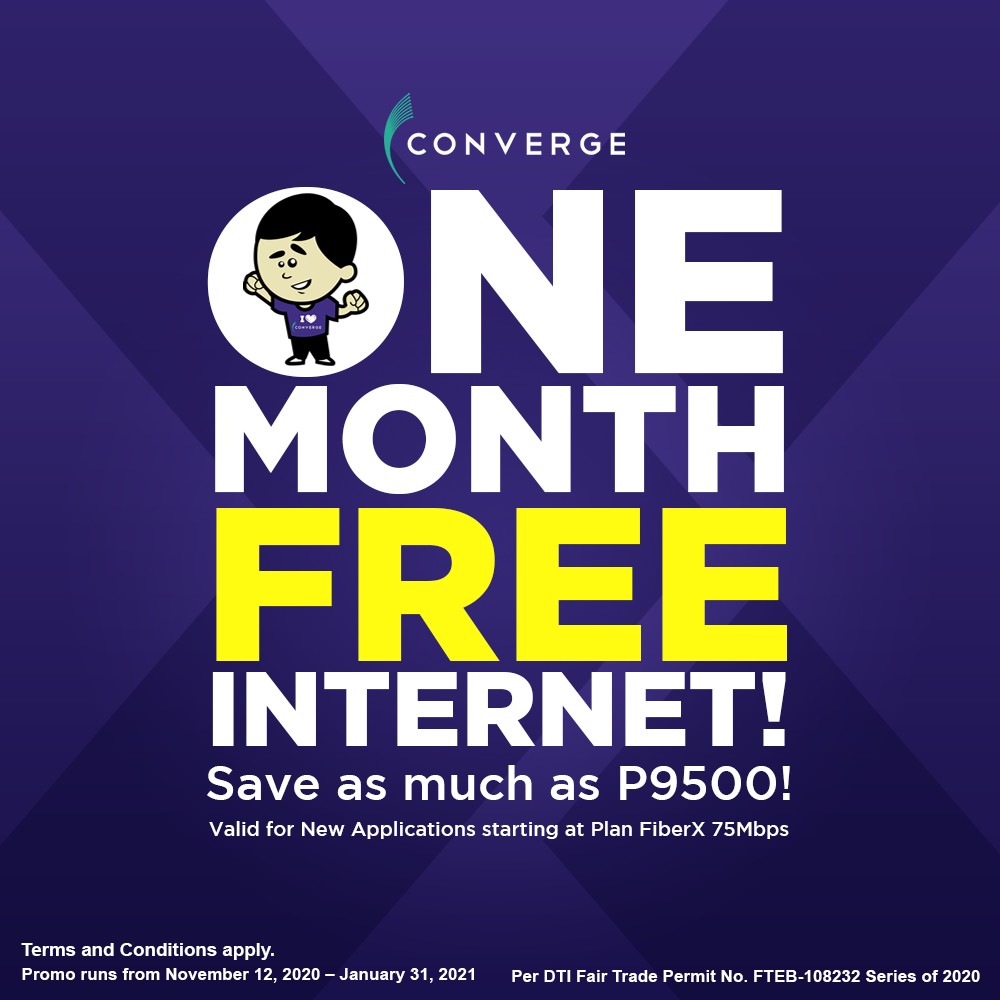 Converge ICT Solutions, Inc., the country’s fastest-growing pure end-to-end fiber internet service provider, has once again proven that it remains true to being the brand with the customer’s benefit at the forefront. The pure fiber company has recently launched its One Month Free Internet Program for new subscribers of their home internet plan, Converge FiberX. Starting Nov. 12, 2020 to Jan. 31, 2021, everyone who will subscribe to the home pure fiber high plans (75 Mbps and above) will be eligible to get the first month of their subscription for free.