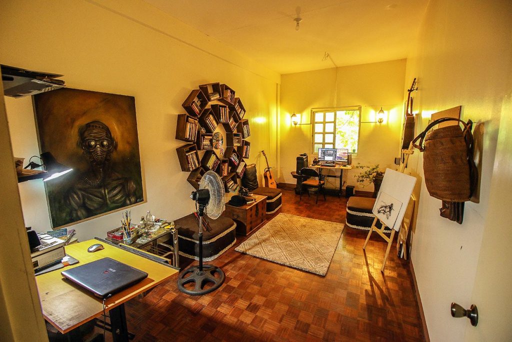 Rom Factolerin is a writer-filmmaker-painter living in Bay, Laguna with his partner, Tina. The house they occupy is too big for the two of them, so Rom set out to turn one of the rooms into an office-library cum studio. He calls it the Story Room because it’s where he “writes stories, animate, edit, and film content that is related to creating stories.”