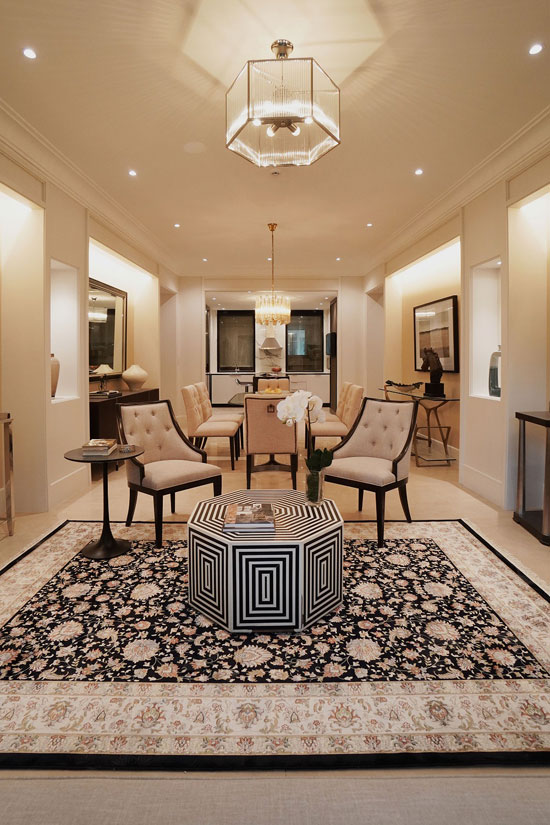 The two model units were deliberately designed in contrasting styles—a pared-down, edgy treatment with sculpted forms and a cool neutral palette, and a more formal, transitional setting rendered in ivory, cream, and black—to show how different personalities can happily settle down in perfect harmony at Botanika Nature Residences.