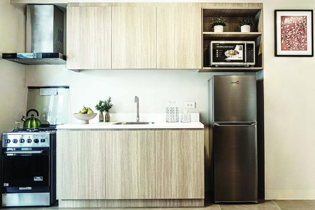 Every unit in the residential project features a kitchen with stainless steel sink and faucet and kitchen counter with built-in cabinets, living and dining areas, bedroom, bathroom, and balcony (in the majority of units).