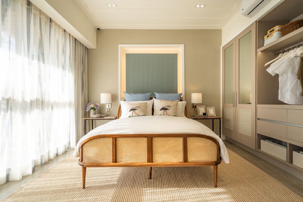 Here, sprawling shores with white sand serves as its resident’s front lawn with a 270-meter stretch on a private beach. From their exquisite living spaces, guests can get panoramic views of the iconic Magellan Bay and breathtaking Hilutungan Channel. The high windows bring in the blue sea’s beauty and breeze, while the bathroom’s porcelain tiles mimic the sea’s sparkle on a summer day.