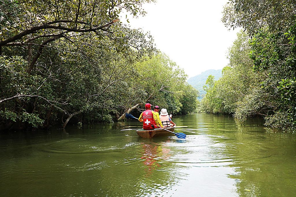 At the end of the trail, guests are taken on a canoe ride through the reforested area. Tour guides share the inspiring story of how the once empty and gray plot of land was transformed into the lush mangrove forest it is now.