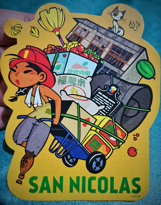 The character of San Nicolas nowadays feels utilitarian, she says. “The place is dotted with warehouses and condominiums, trucks rumble through the streets, kargadors crisscross the streets, hauling their cargo to Binondo and Divisoria. That’s why some people call San Nicolas the Bodega of Binondo.” She worked with illustrator and animator Kenny Tai for her AKIM (Ang Kwentong Inuwi Mo) to develop the San Nicolas character in her “Manila Girls” series of sketches and the latTer came up with a one-legged lady pulling a karitela laden with goods that could be found in the district such as walis, harina from the bodegas, fruits, and even a church bell that used to be made from the Sunico Foundry. “There is also a cat perched on the cargo. Because we have many cats,” she adds.