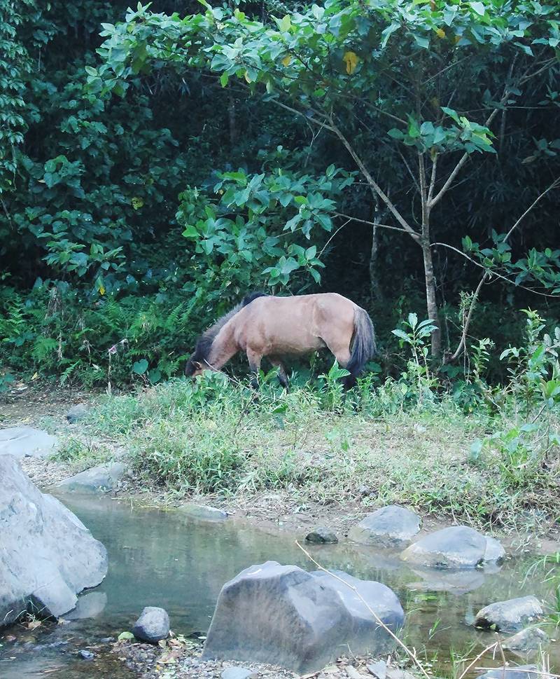 After a soaking walk that included seeing locals going about their usual business in the river, sighting a horse eating grass, and crossing the stream twice, we settled into a rocky segment of the river and were led by Dr. TJ into meditation.