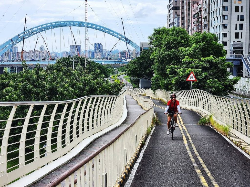 On another recent trip to Taiwan, my husband and I rented bicycles for three days to bike around Taipei. We got to cycle along scenic bike paths right next to clear riversides and streams. In the busier parts of the cities, these segregated bike paths weaved seamlessly under, over, or right next to expressways connected to major city roads through tree-shaded paths and linear gardens.