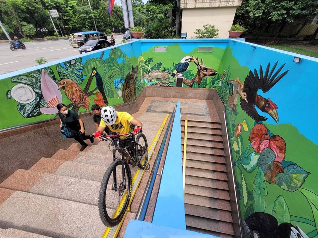 Many footbridges, such as those crossing Commonwealth Avenue and Katipunan Avenue (near UP Town Center), and the underpass linking QC Hall to Quezon Memorial Shrine have bike ramps so it’s easier to push bikes up and down. These are very useful for those who cannot physically carry their bikes up and down stairs.