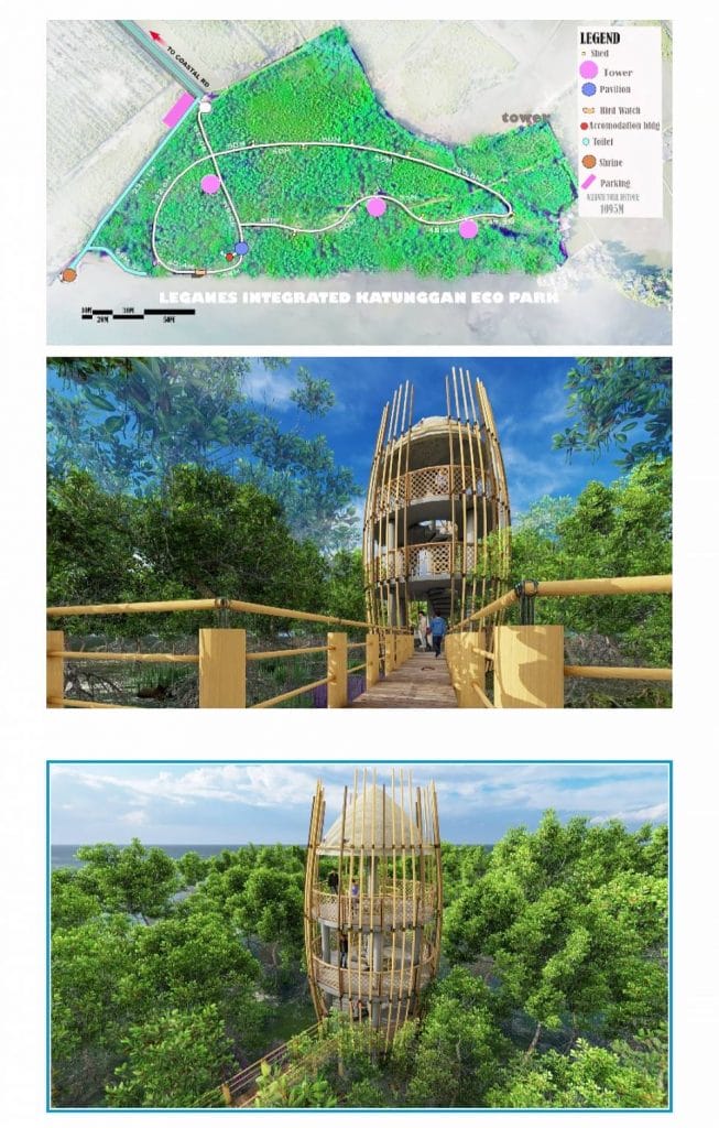 Katunggan Eco Park, home to diverse mangrove species and birds, is designed as a nature sanctuary with fishing trap structures called “taun” serving as man’s tower viewpoint shelters. Tourists can enjoy the mangrove forest by strolling along the circumferential boardwalk, moving from one “taun” to another. The park offers a chance to explore different mangrove species, experience the local flora and fauna, and breathe in the clean air of the nature reserve.