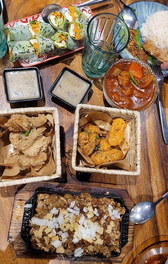 Cosmic is a well-known vegan Filipino restaurant and cafe known for transforming traditional Filipino comfort food into plant-based dishes. Here, you can find meatless versions of sisig, kare-kare, and sinigang in a cozy setting.